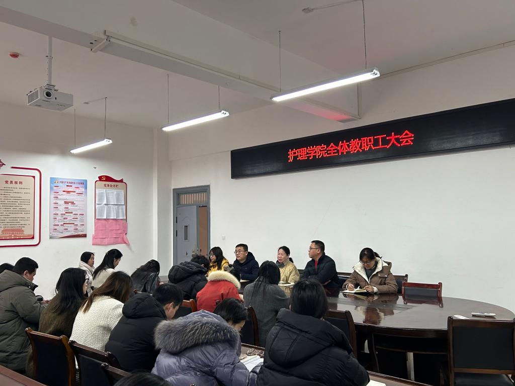 本站讯(护理学院 黄成)凝心聚力开新局,奋楫扬帆启新程。2月14日,护理学院在和济楼C218召开新学期全体教职工大会,学院全体领导班子成员及教职员工齐聚一堂,共同谋划新学期重点工作,为学院高质量发展锚定方向、凝聚共识。