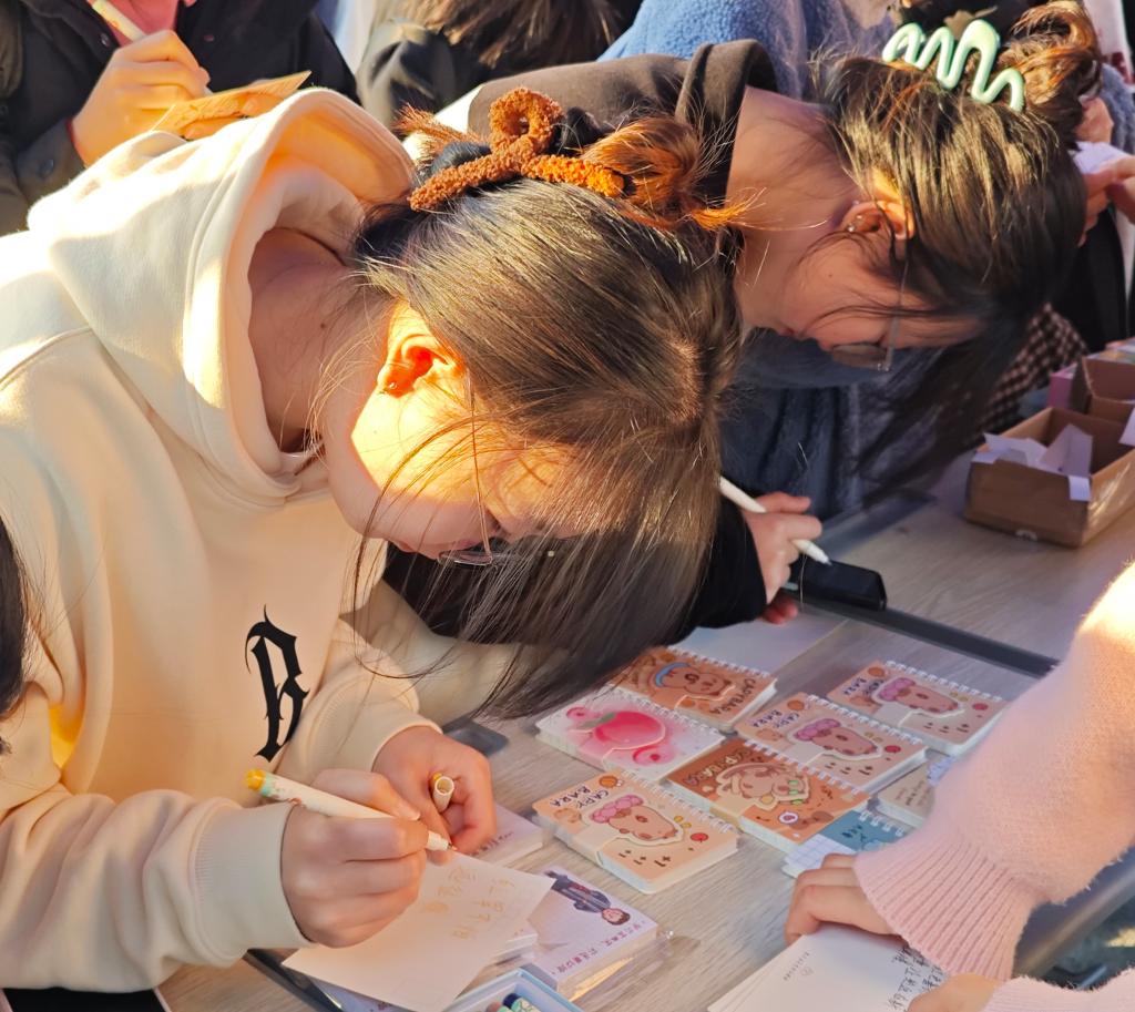 活动现场,同学们兴致盎然,积极参与到各环节当中。“匠心筑梦,挥动红色精神”环节,同学们以团扇为载体,展现出当代青年在传承红色基因、弘扬民族精神上的担当与使命;“信笺传意,启红色新程”环节,大家以明信片为舟,载着红色家风的力量,向着新征程扬帆启航;“红色传承,锋味趣答”环节,则充分展现同学们丰富的知识储备和积极向上的精神风貌,让雷锋精神蔚然成风;最后,在“星火传承,拼红盛宴”环节,既考验同学们对红色文化的理解深度,又通过团队协作展现青春智慧。