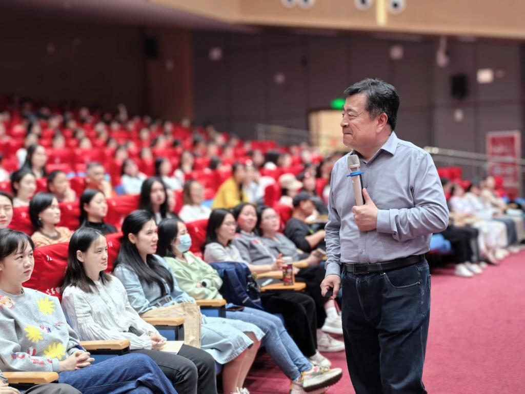 黄宝国以其深厚的学术底蕴和丰富的实践经验,围绕主题《成长的力量——新时代有梦想谁都可以了不起》,带领大家解读新时代背景下职业院校师生的成长路径与发展愿景。开篇引用习近平总书记的新年贺词,强调“在新时代中国式现代化的新征程上,每一个人都是主角,每一份付出都弥足珍贵,每一束光芒都熠熠生辉”,极大鼓舞了在场师生的士气,激发大家为实现个人理想和共同梦想而奋斗的热情;整场讲座,黄宝国教授围绕“要悦纳自己的不完美、发现自身的闪光点、重燃学习向上的内驱力、培育心有大我的家国情”四个方面,结合职业教育发展特点,激励在场师生用“用大爱温暖世界、用奋斗创造幸福、用智能改变人生、用梦想引领未来”。