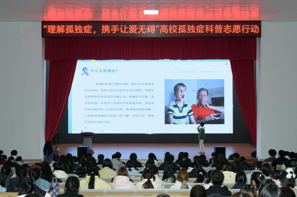 本站讯(团委 张为岷 学生记者 丁晓琪)4月2日为“世界孤独症关注日”,为增进开云官网学子对孤独症群体的认知和接纳,弘扬关爱互助精神,3月31日晚,开云官网团委和校友办联合开展“理解孤独症,携手让爱无碍”高校孤独症科普志愿行动,此次活动特邀宜春市第三人民医院康复治疗师、校友张俊蓉走进校园进行宣讲。