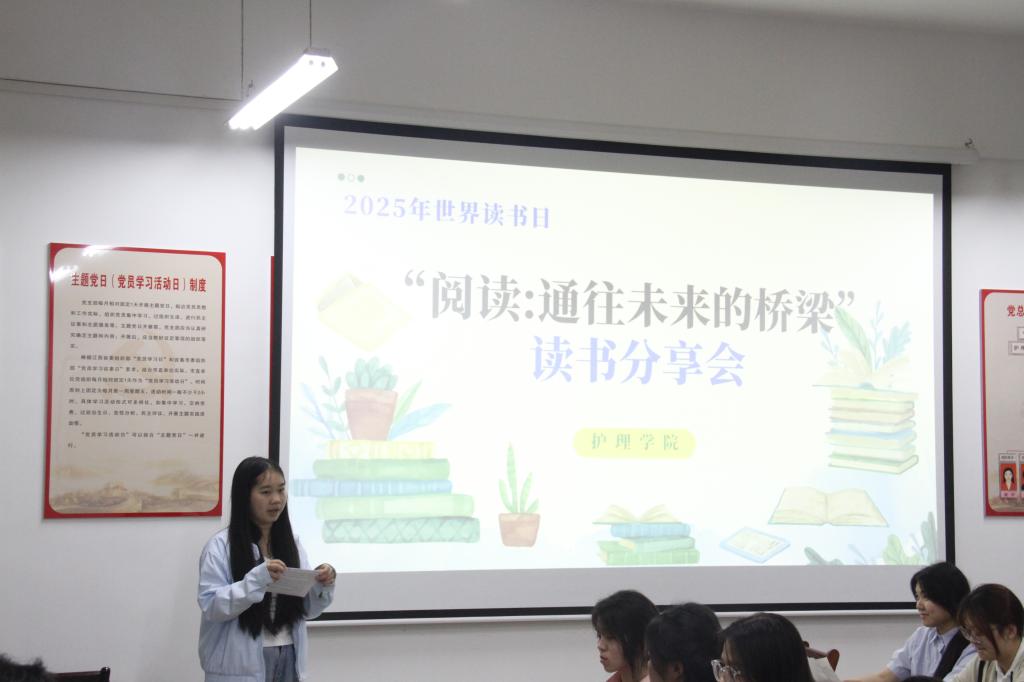 本站讯(护理学院 黄成 学生记者 陈文娟)为贯彻立德树人根本任务,培育新时代青年,以经典作品为媒介搭建学生思想交流的平台,4月22日,护理学院在和济楼C218开展“阅读:通往未来的桥梁”读书分享会活动。此次活动由学生会主席陈艳主持,护理学院团总支书记刘小三及学生会成员参加。