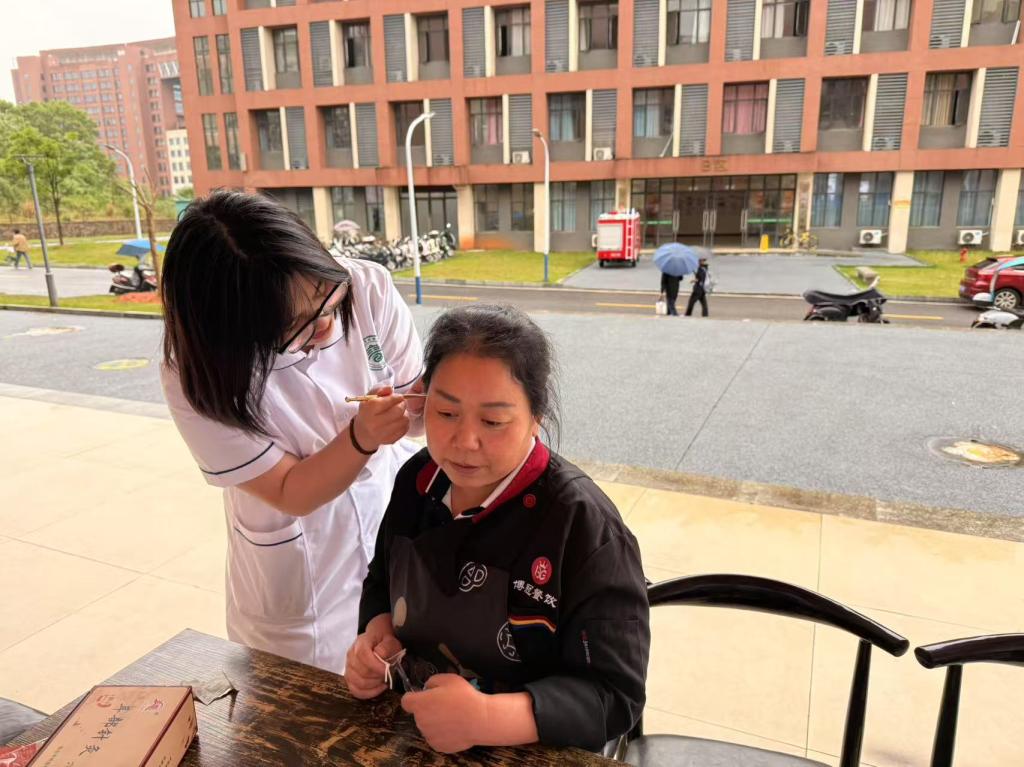 活动现场,志愿者们充分发挥专业特长,细致为过往师生测量血压、心率,同时运用中医“望闻问切”的传统诊断智慧,从神色、气息、症状等多维度进行综合研判,为师生提供专业的健康指导。志愿者们耐心讲解中医文化知识的同时,还手把手传授穴位按摩、四季养生等实用中医技巧,针对不同体质提供科学调理建议;面对师生提出的健康诉求,无论是慢性病的长期困扰,还是感冒咳嗽等日常小病痛的咨询,志愿者们始终耐心倾听、细致解答,用专业与温暖回应每一份健康期待。