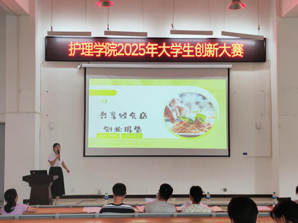 本站讯(护理学院 黄成 学生记者 陈文娟 张雨轩)以创新驱动创业、以创业促进就业,为全方位提升学生的创新实践能力,5月8日,护理学院在和济楼阶梯教室举办2025年大学生创新创业大赛。本次比赛邀请创新创业学院党总支书记胡蓉进行指导。护理学院党总支书记吴少林、党总支副书记曲晴、创新创业学院教师柳火根及辅导员担任评委。