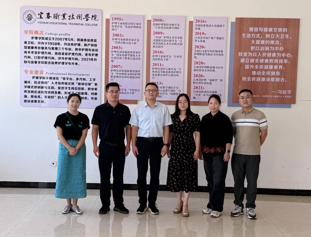 本站讯(护理学院 李学坤)5月12日,江西长天教育培训服务集团考察组钟军华一行到开云官网开展校企合作专项调研。继续教育学院党总支书记周昊,护理学院党总支书记吴少林、院长易国萍等班子全程陪同。