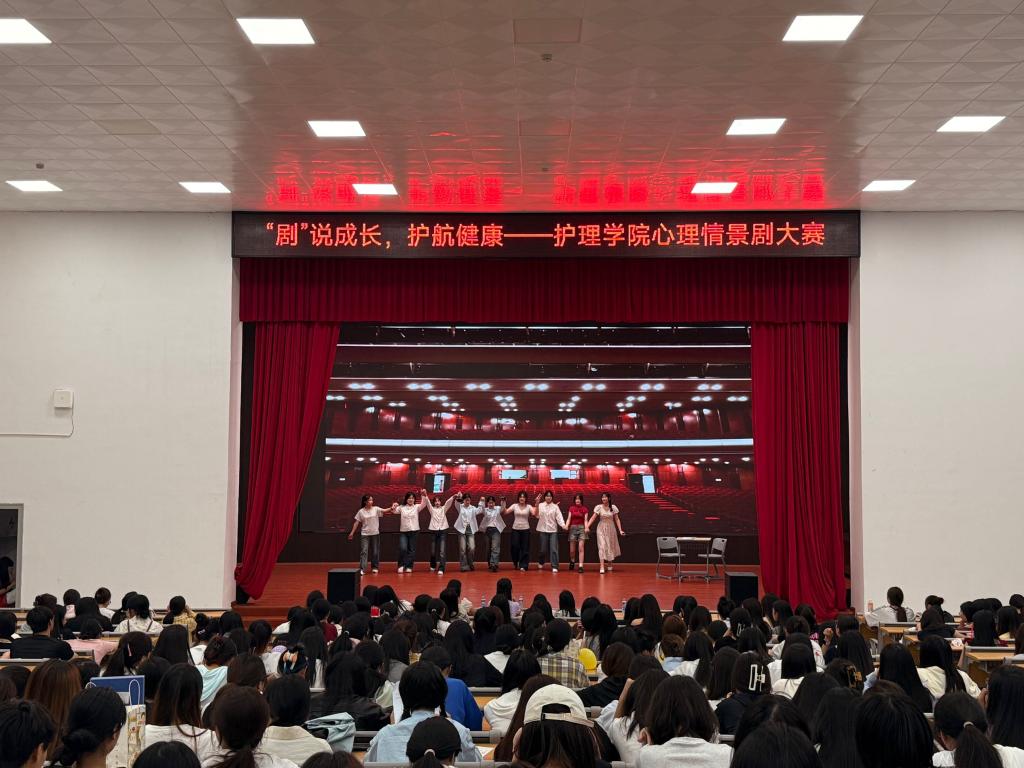 活动自5月初启动后,得到在校各班级的积极响应与广泛参与。经过对剧本的初步评审,最终有10 支队伍脱颖而出,成功入围决赛。各参赛团队紧密围绕当代大学生现实生活中的热点问题展开剧本创作,内容涵盖自我认同、家庭关系、社会压力、情绪管理等多个方面,充分展现当代大学生在成长过程中可能面临的各种心理挑战;比赛现场,各参赛队伍通过独白、角色扮演、角色互换等多种表现形式,从多个角度生动地展现了当代大学生的心理状态。演员们凭借着真挚的情感表达和出色的舞台演绎,将一个个贴近生活的心理故事搬上舞台,引发了观众的强烈共鸣。现场气氛热烈,掌声不断。最终,护理24207班的《“宿”说情谊》获得一等奖。