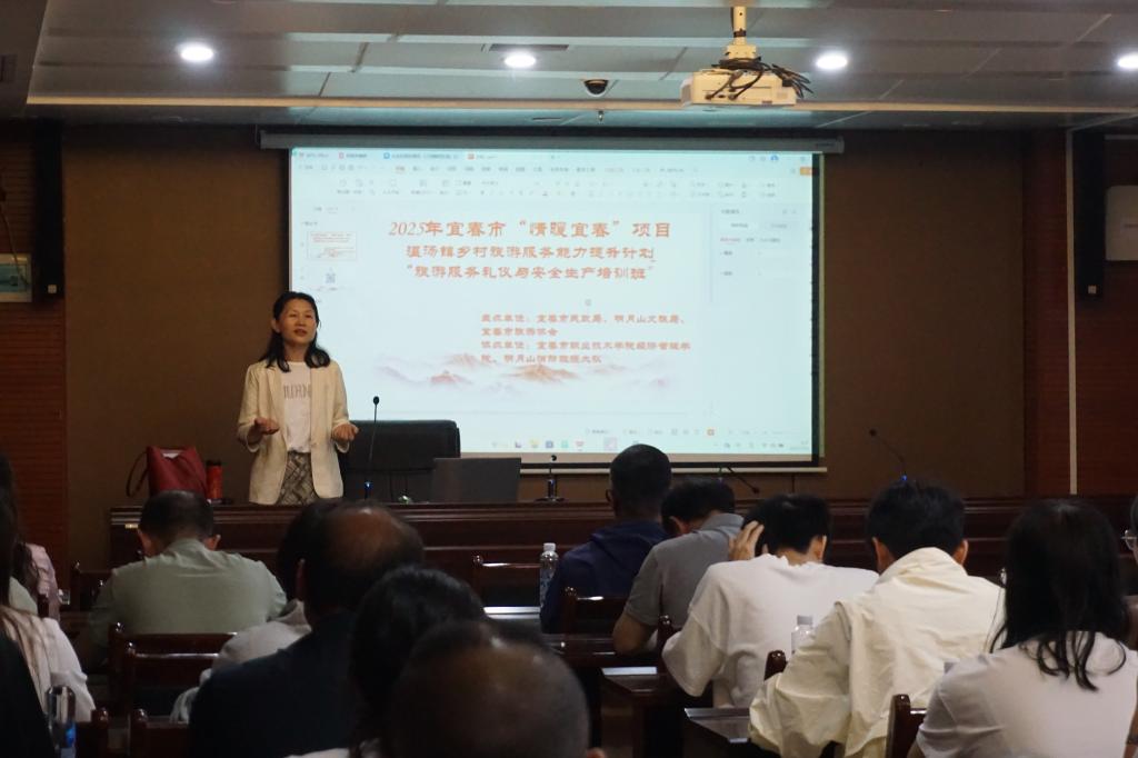 本站讯(经济管理学院 马思源)5月16日,由宜春市旅游协会与明月山文旅局联合主办、经济管理学院协办的"温汤镇旅游服务礼仪与旅游安全生产专题培训班"在明月山温泉风景名胜区游客中心圆满收官。本次培训是《2025宜春市"情暖宜春"振兴乡村旅游产业——温汤镇乡村旅游服务能力提升计划》的重点项目之一,旨在通过系统化专业培训,全面提升景区及周边旅游服务标准化水平,切实维护游客生命财产安全和旅游市场秩序稳定。