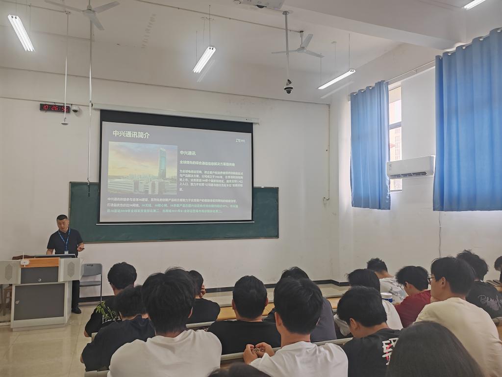 中兴通讯股份有限公司高旭经理详细讲述中兴通讯自创立以来,在通信领域的砥砺奋进历程,从默默无闻到成为全球知名的通信技术企业,中兴通讯的每一步都充满着挑战与突破。企业文化分享环节,他深入解读企业核心价值观与精神,让学生们深刻理解到一家优秀企业的文化内涵。
