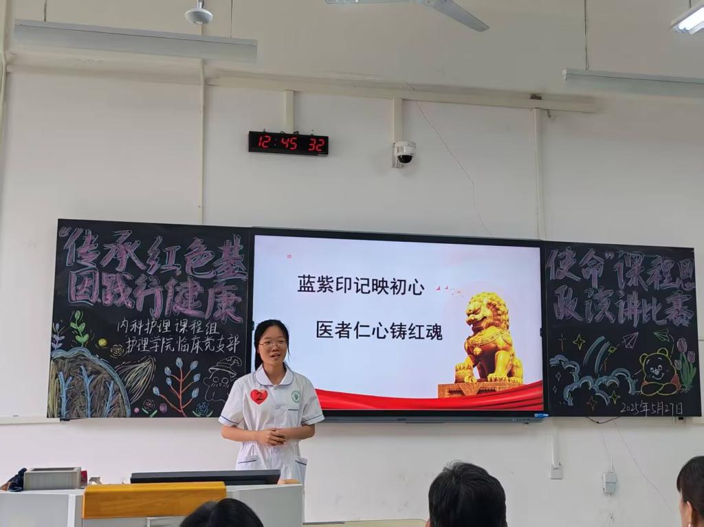 本站讯(护理学院 赵丽丽)5月27日中午,护理学院临床党支部、内科护理课程组在和济楼C112举办“传承红色基因,践行健康使命”课程思政演讲比赛。本次比赛自5月6日启动以来,受到了同学们的广泛关注和积极参与,经过初赛的激烈角逐,最终有8个团队脱颖而出,成功晋级决赛。