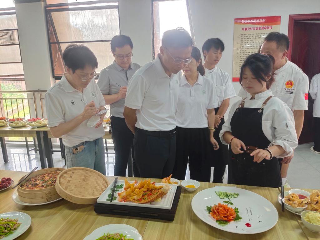 本站讯(经济管理学院 马思源)6月13日,经济管理学院烹饪专业技能竞赛在烹饪实训中心举行。校党委副书记、校长李铁刚,副校长刘江毅亲临现场担任评委并为获奖选手颁奖,经济管理学院党总支书记邓晶,院长邓如星陪同参加。