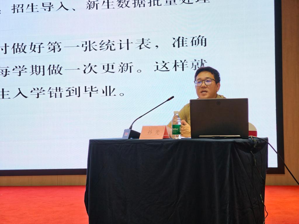 学生管理信息系统是教育数字化转型的“关键枢纽”,更是连接学生成长数据与教育决策的“神经脉络”,作为学生信息管理的一线工作人员,孙光老师善于总结整理系统应用中的各类问题。此次授课他围绕“学籍管理”和“数据处理”两大核心模块展开系统讲授,通过“理论+实践”的方式,引导学员在案例解读和研讨交流中提升理论联系实际的能力。从理论知识到实操技能、从基础入门到进阶技巧,深入浅出的讲解让学员受益匪浅、收获颇丰。