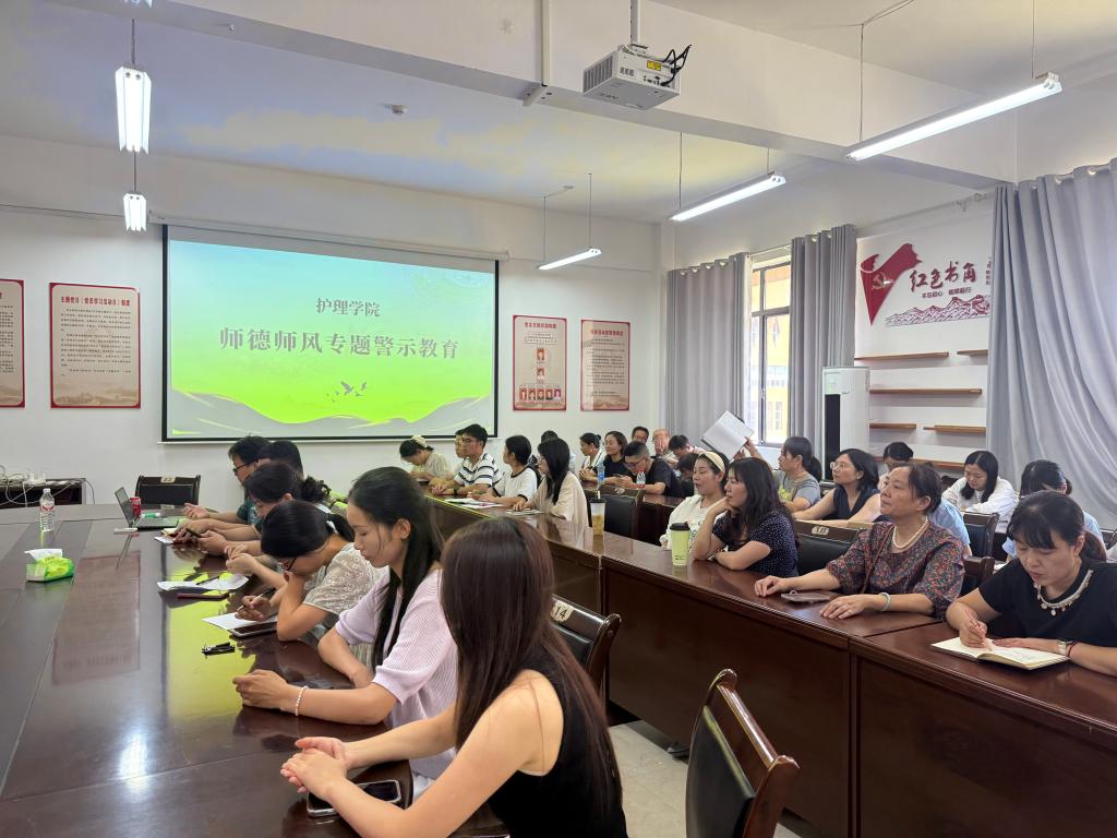 会议伊始,吴少林带领全体教职工深入学习习近平总书记在中央城市工作会议上的重要讲话精神。他结合护理学科发展与人才培养实际,强调要将讲话精神中的“以人民为中心” 理念融入教育教学全过程,立足医疗健康领域需求,培养兼具专业素养与社会责任感的护理人才。党总支副书记曲晴领学《习近平生态文明文选》第一卷,通过解读文选核心要义,引导教职工树立生态文明理念。副院长李学坤结合教育系统内典型警示教育案例开展师德师风专题学习。他深入剖析师德失范行为的危害与后果,要求全体教师务必以案为鉴、警钟长鸣,始终心怀对教育事业的敬畏之心,严格遵守《新时代高校教师职业行为十项准则》。