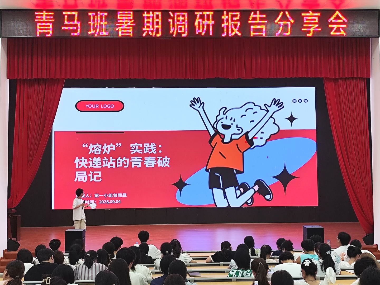 分享会上,四个实践小组围绕不同主题,汇报了暑期调研成果与实践对策。内容涵盖红色资源活化、乡村服务优化、语言助力振兴及校园服务创新等方面,全面展现了青马学员的实践成长与突破。