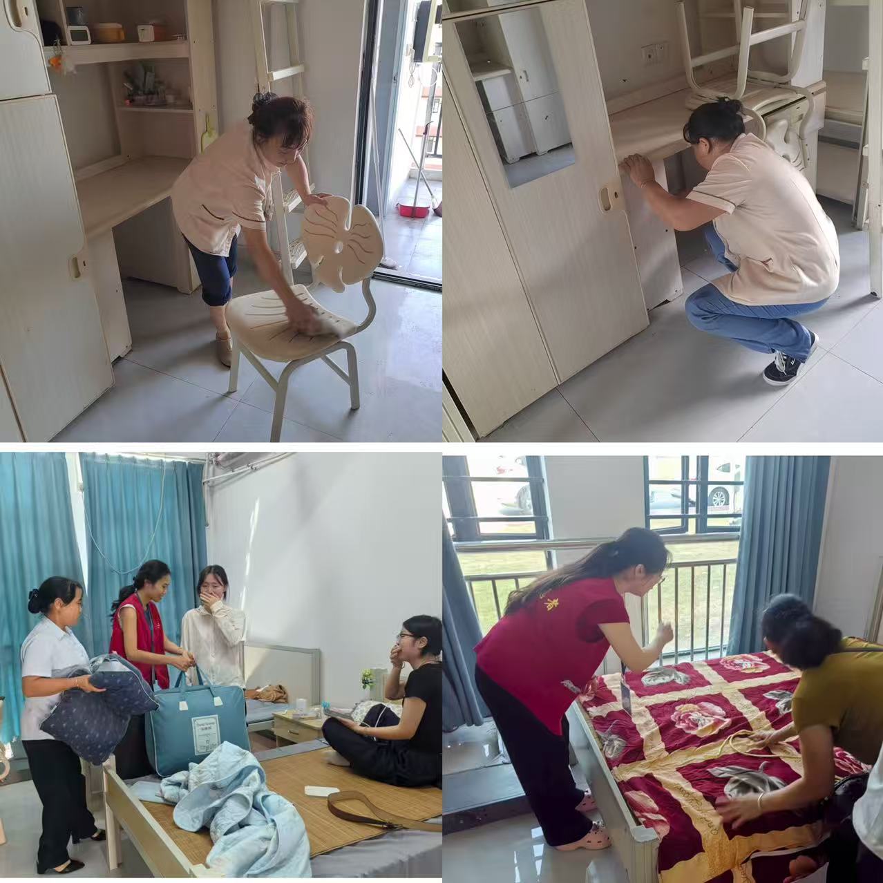 在宿舍安排上,提前启动“暖心安居”工程,对分布在12栋的1426间新生宿舍进行全面清洁打扫与设施检修。为确保新生顺利入住,支部联合后勤部门对空调、电梯、直饮水、冷热水等系统进行全面排查与维护,提供应急维修服务热线,真正做到“硬件到位、服务在线”。