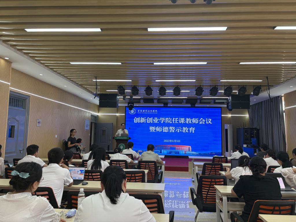 本站讯(创新创业学院 况丹)为落实立德树人根本任务,凝聚育人共识,9月9日下午,创新创业学院在思创楼路演厅召开新学期任课教师暨师德警示教育会议。会议围绕“提升教学质量、强化师德建设、服务国家战略”三大核心主题,全面部署新学期的各项工作任务。会议由创新创业学院副院长李浩然主持。