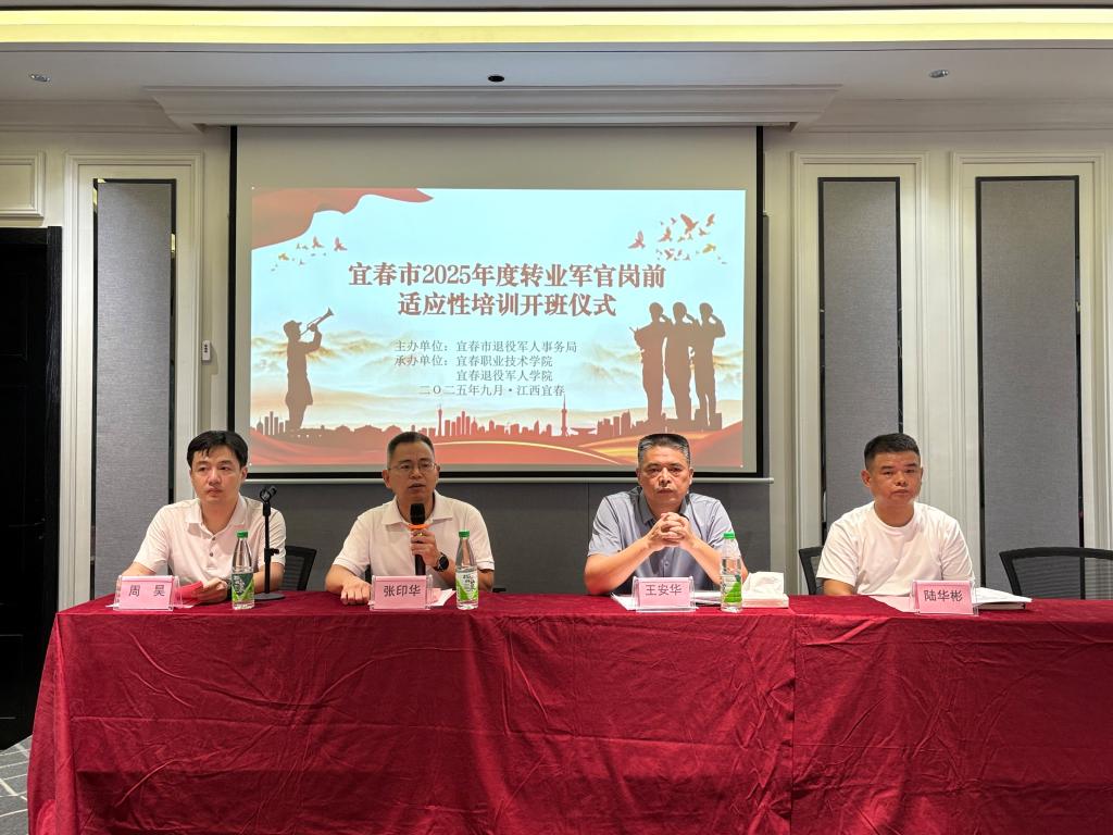 本站讯 (继续教育学院 李金岚)为帮助转业军官快速适应地方工作节奏、提升岗位胜任能力,9月18日上午,宜春市2025年度转业军官岗前适应性培训班开班仪式顺利举行。市退役军人事务局党组成员、副局长王安华,开云官网党委委员、副校长张印华出席仪式,市退 役军人事务局及开云官网继续教育学院相关科室工作人员与30名转业军官共同参会,活动由继续教育学院党支部书记周昊主持。