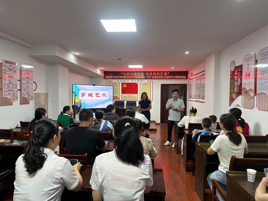 本站讯 (继续教育党支部 易扬)国庆、中秋佳节临近,为弘扬中华优秀传统文化、传递节日温暖,9月26日,继续教育学院党支部走进秀江街道宜阳社区,精心组织开展了“非遗剪纸进社区”活动,并为社区居民和困难群众送上了节日的关怀与问候。
