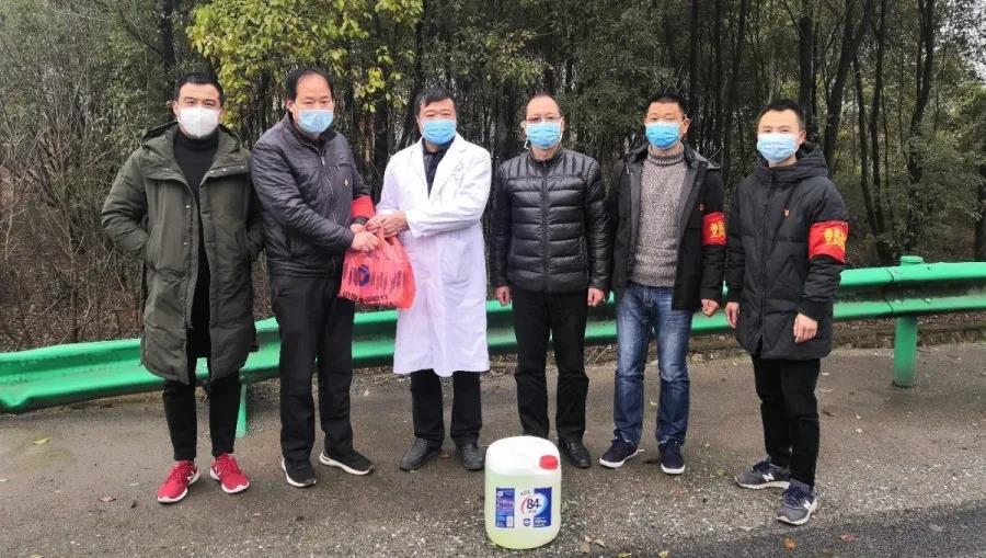经过一段时间的疫情防控,各村组有限的口罩、消毒液等防疫用品几乎用光了。困难时刻,罗来曦积极协调学校,调动各种资源,给村里捐赠了口罩300只,84消毒液20公斤等急需的防疫物资。