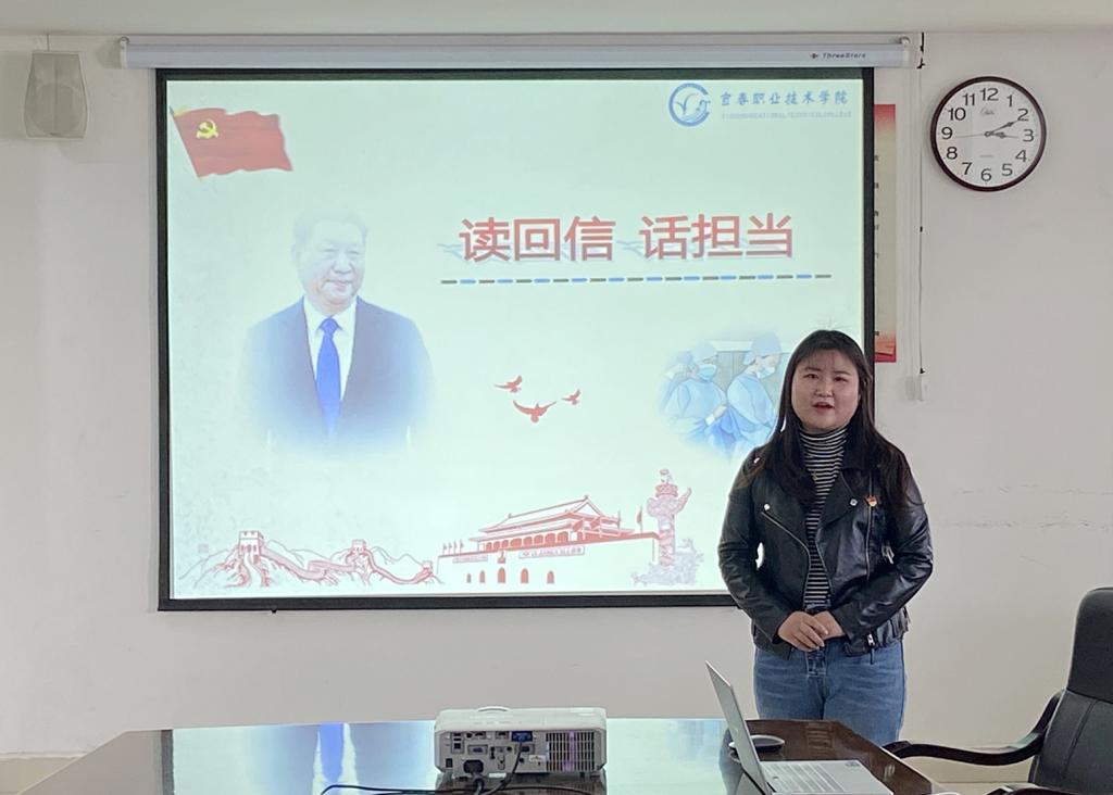 4月24日,开云官网召开“学回信话担当”学习回信精神座谈会,学工处、全体一线专职辅导员共40余人参加座谈。开云官网充分发挥优秀辅导员示范作用,曾获江西省优秀辅导员、宜春市优秀辅导员邹晓英带头示范学习,她在学习交流发言中说道:沧海横流,方显英雄本色!在这样地特殊时期,我们青年一代,特别是青年党员既要有坚定的政治立场,也要有服务社会和人们的知识与技能;既要有舍身忘我的勇气和担当,也要有开拓创新的精神和干劲。