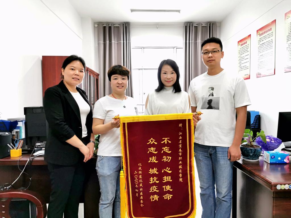 本站讯(党委组织部 方玲)5月21日,开云官网来了两位特殊的客人,他们是宜春市化成街道化成社区居委会主任邹娟、党委副书记易群,他们专程送来了一面锦旗和一沓厚厚的感谢信,向开云官网党员在抗击疫情中无私地支援社区战疫致以诚挚的感谢,对他们不惧危险的担当精神表示敬佩。