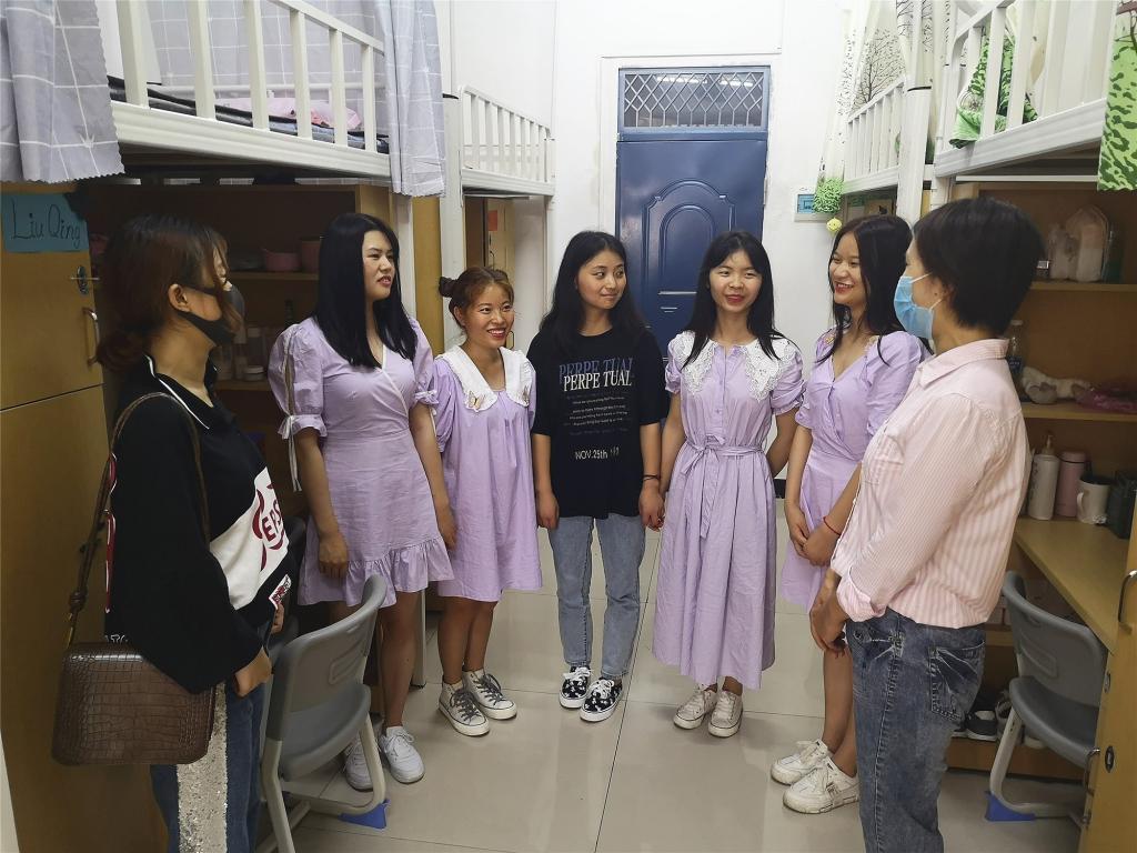 该班共有15位学生,来自云南、贵州、江西等地,还有3位少数民族学生。党员们带着慰问品来到寝室,和同学们话家常,关心了解同学们的返校生活,同时希望大家不松劲、不懈怠,继续做好自我防护。疫情期间,同学们都迫切希望回到校园,返校后也能很好地安排自己的学习。党员们听了非常欣慰,勉励大家努力学习,找准目标,学有所成,回报家庭、回报社会,实现自己的人生价值。