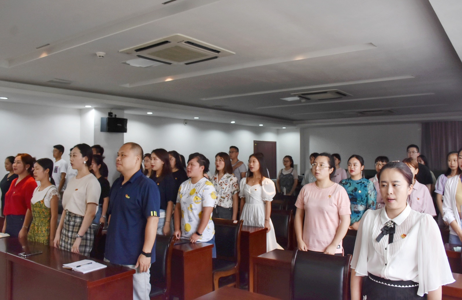 张印华对教工团支部的成立表示了祝贺,并提出了三点希望:一是要珍惜舞台,加入有使命的组织,发挥先进带头作用;二是要坚定理想信念,锤炼自我,做一名有胸怀、有奉献、有扎实学识、教人知识、教人成功的教工团员;三是要追梦奋斗,在实干中成长,在合作中获取快乐,在创新中出彩,在表现中突破。会议在雄壮的团歌声中闭幕。
