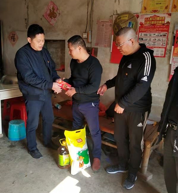 首先,慰问组来到万载高城村的王某家中。王某身体有残疾,妻子患有精神方面疾病,家庭负担非常重。党员们以拉家常的方式详细了解他们的身体状况、经济来源、生产生活条件、家庭情况、当前存在的困难,并送去慰问品。