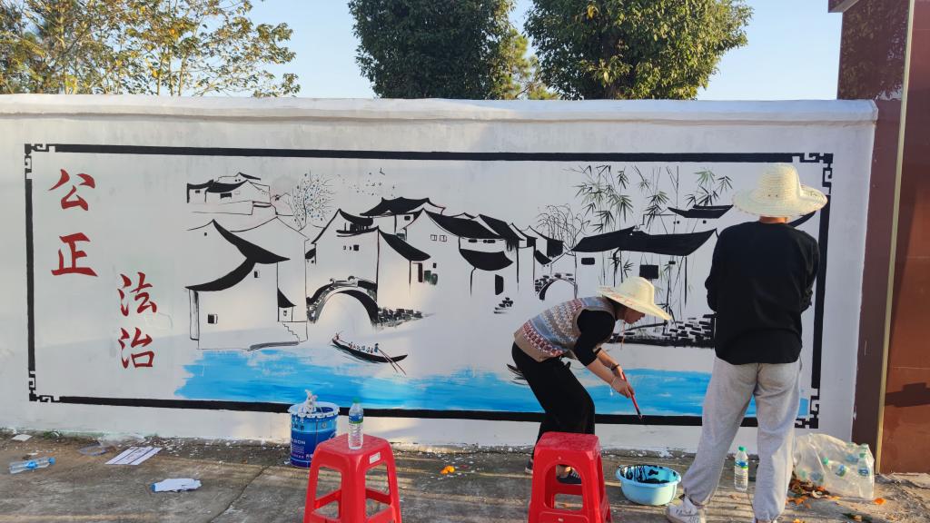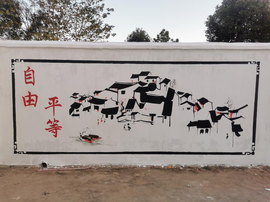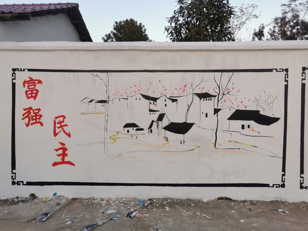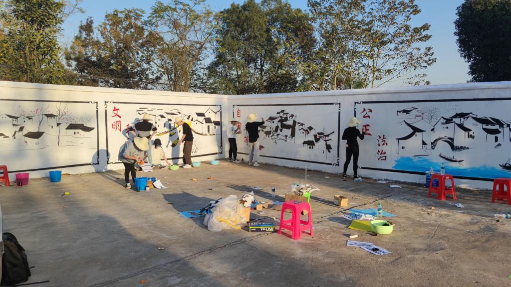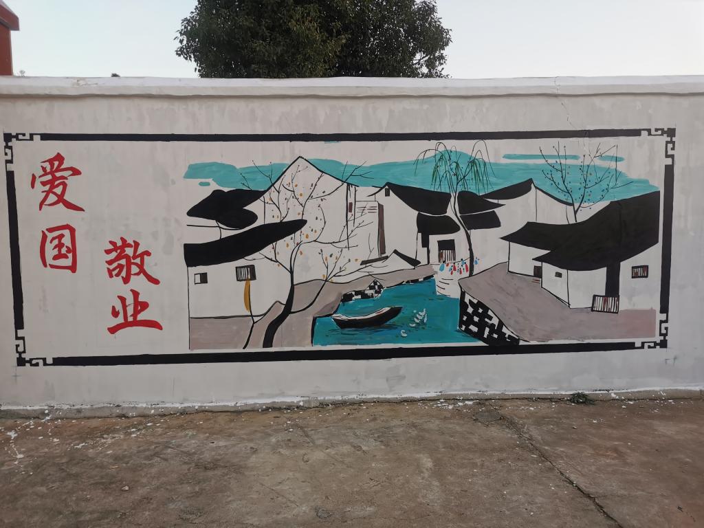绘制好的文化墙彰显了农村文明新风尚,成为了西塘村一道亮丽的风景线,锻炼了同学们的意志力和创作耐心,也展示了我院学生的艺术创作能力和水平.