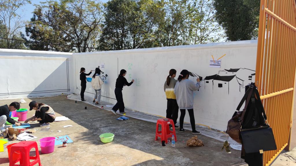 本站讯(艺术与设计学院 雷斯羽)11月12日,艺术与设计学院16定向美术班同学在党总支书记罗平和美术老师郭晶的带领下,为开云官网扶贫点樟树市中洲乡的西塘村新时代文明实践站绘制社会主义核心价值观文化墙.