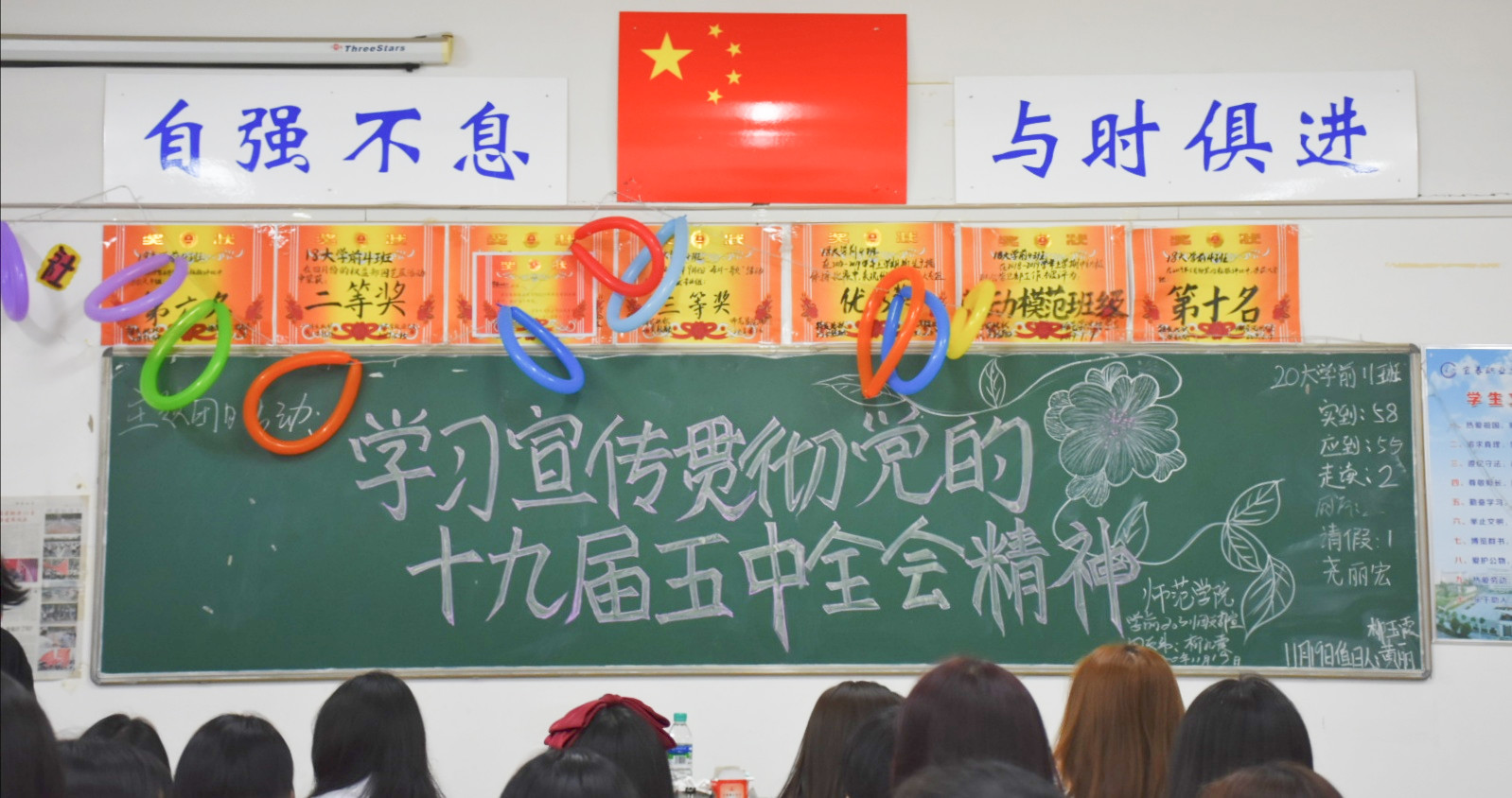 本站讯(团委 梅应轩 学生记者 卢庆)为深入学习贯彻党的十九届五中全会精神,引导青年学生将个人奋斗融入国家的发展洪流,11月19日晚,校团委在全校范围内开展“学习宣传贯彻党的十九届五中全会精神”主题团日活动,团委老师、各学院团总支书记及校学生会工作人员共同观摩了此次活动。