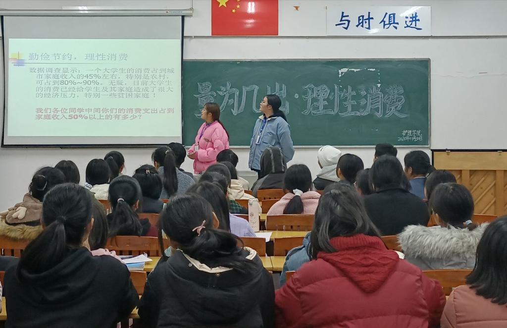 本站讯(护理学院 李珊 学生记者 傅婷)“一粥一饭,当思来之不易”,勤俭节约是中华民族的传统美德。为培养大学生勤俭节约、理性消费的良好习惯,树立正确的节约观,争做勤俭节约风尚的传播者、示范者和实践者。11月30日,护理学院党团服务站在四教楼510教室组织20级新生召开了“量入为出,用之有度”的理性消费交流会,60余名20级新生代表参加了交流会。
