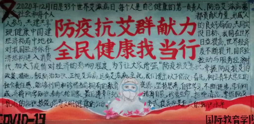 各学院紧扣主题,积极参与板报的绘制。板报设计别出心裁,精美的背景、秀丽飘逸的小字、富有新意的构图将疫情防控、艾滋防治等宣传知识呈现在板面上,正确引导了同学们树立健康、文明的生活理念。一幅幅活泼新颖的图案点缀成的精美板报吸引了不少同学驻足观赏,更为宜职的冬日增添了一抹靓丽的色彩,让板报刊出不仅有创意更有意义。