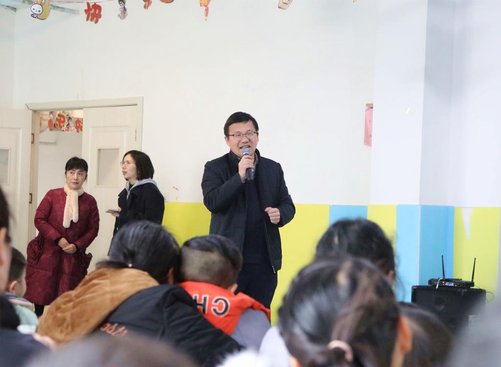 机关第三党支部党员、校党委副书记高健群向特教岗位上辛勤工作的老师们表示敬意,感谢他们对孩子们的关心和照顾,并为孩子和家长们提前送上新年的祝福。