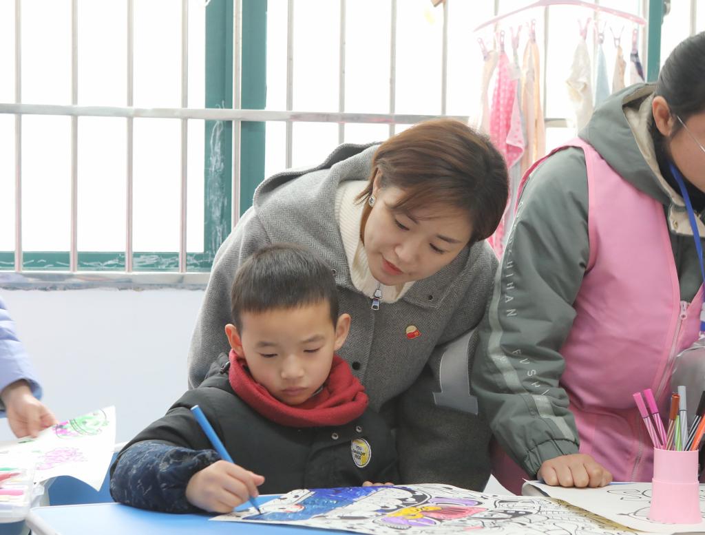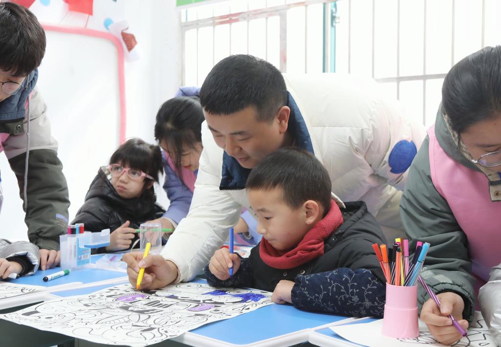 “你喜欢哪个颜色?我们把它涂上。”大学生通讯社的同学们握着小朋友的手,和他们一起涂色。热情接触中,孩子们从最初的疏远到渐渐打开心理防备,与大家嬉笑玩闹。