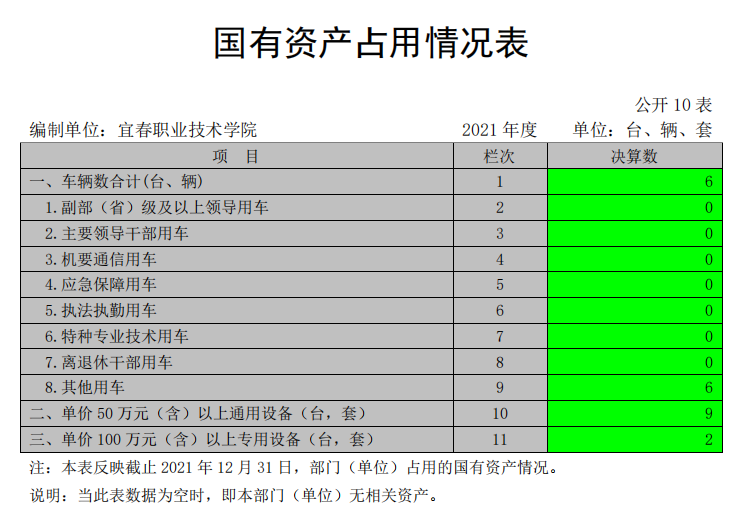 截止2021年12月31日,本部门(单位)国有资产占用情况见公开10表《国有资产占用情况表》。其中车辆中的其他用车主要是一般公务用车。