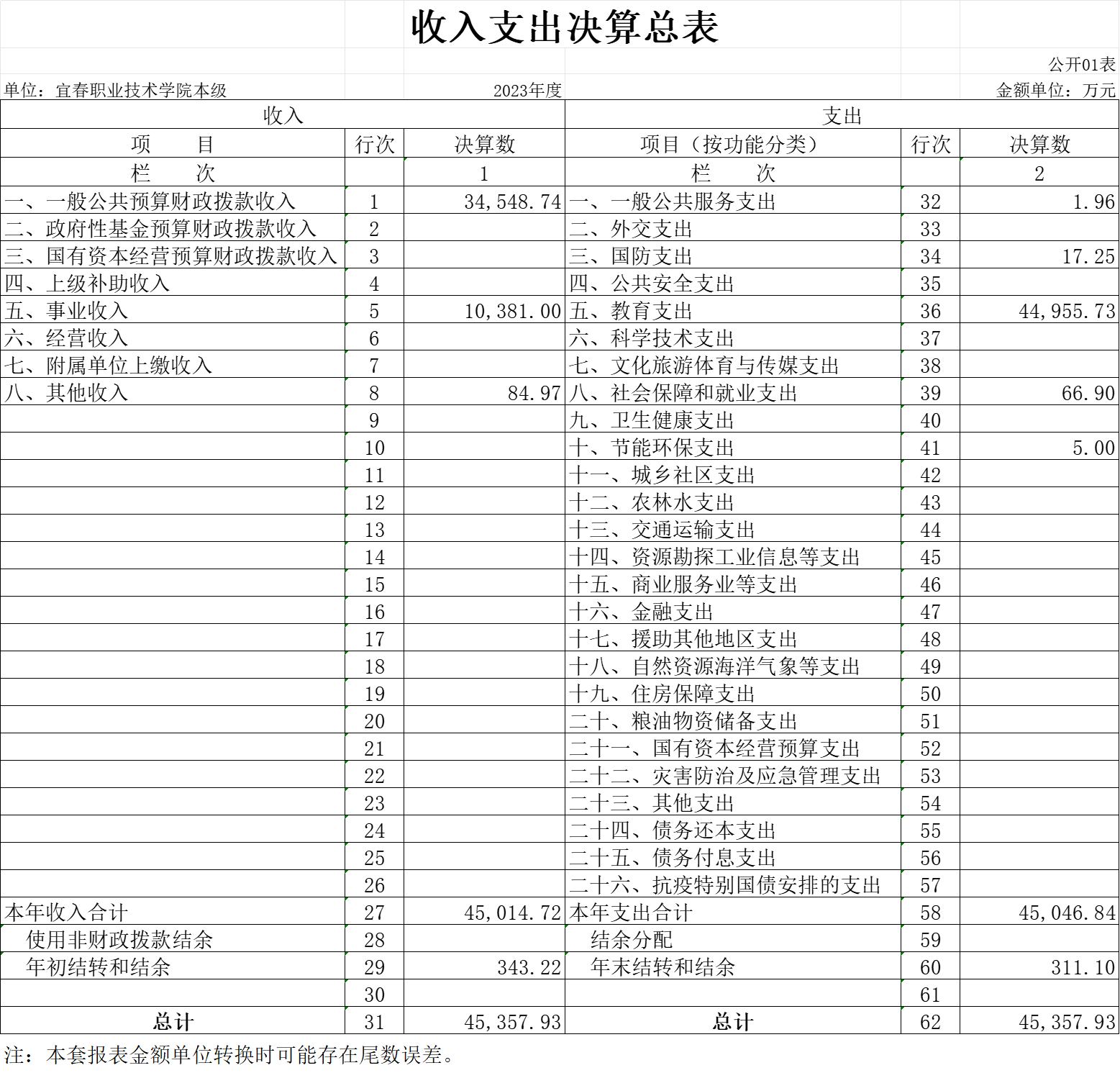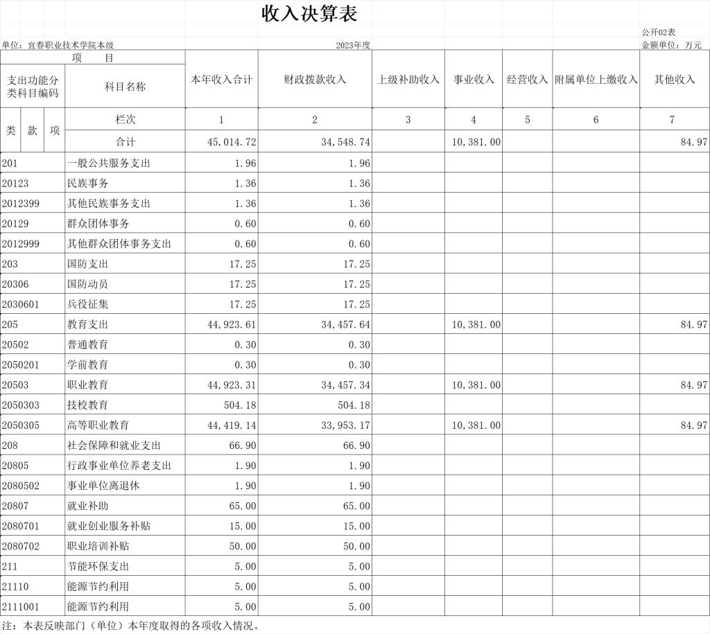 本单位2023年度收入总计45357.93万元,其中年初结转和结余343.22万元,比上年增加128.7万元,增长60%;使用非财政拨款结余和专用结余0万元,比上年增加(减少)0万元,增长(下降)0%;本年收入合计45014.72万元,比上年增加9810.93万元,增长27.87%,主要原因:为满足新校区教学需求进行了大量设备采购。