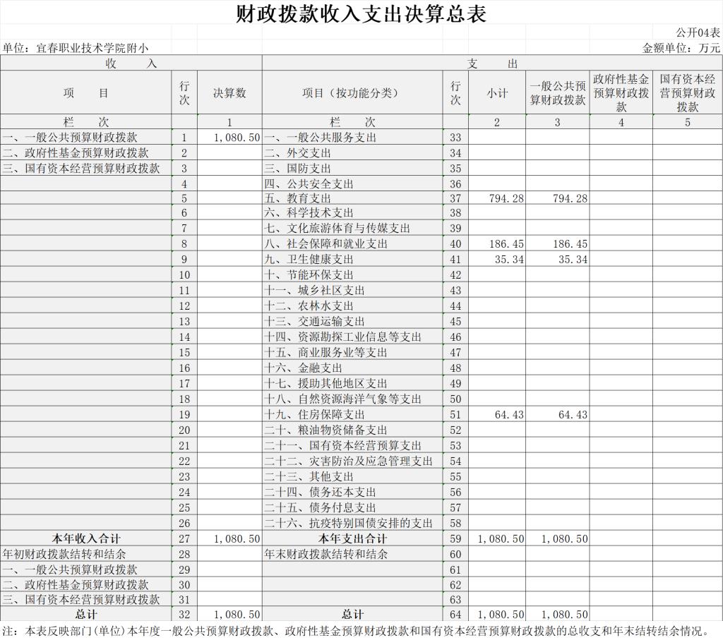 四、财政拨款收入支出决算总表