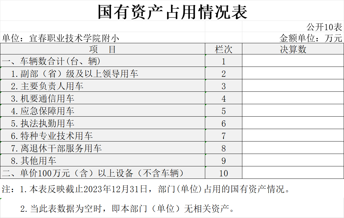 十、国有资产占用情况表
