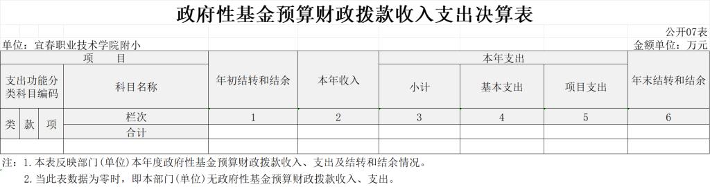 七、政府性基金预算财政拨款收入支出决算表