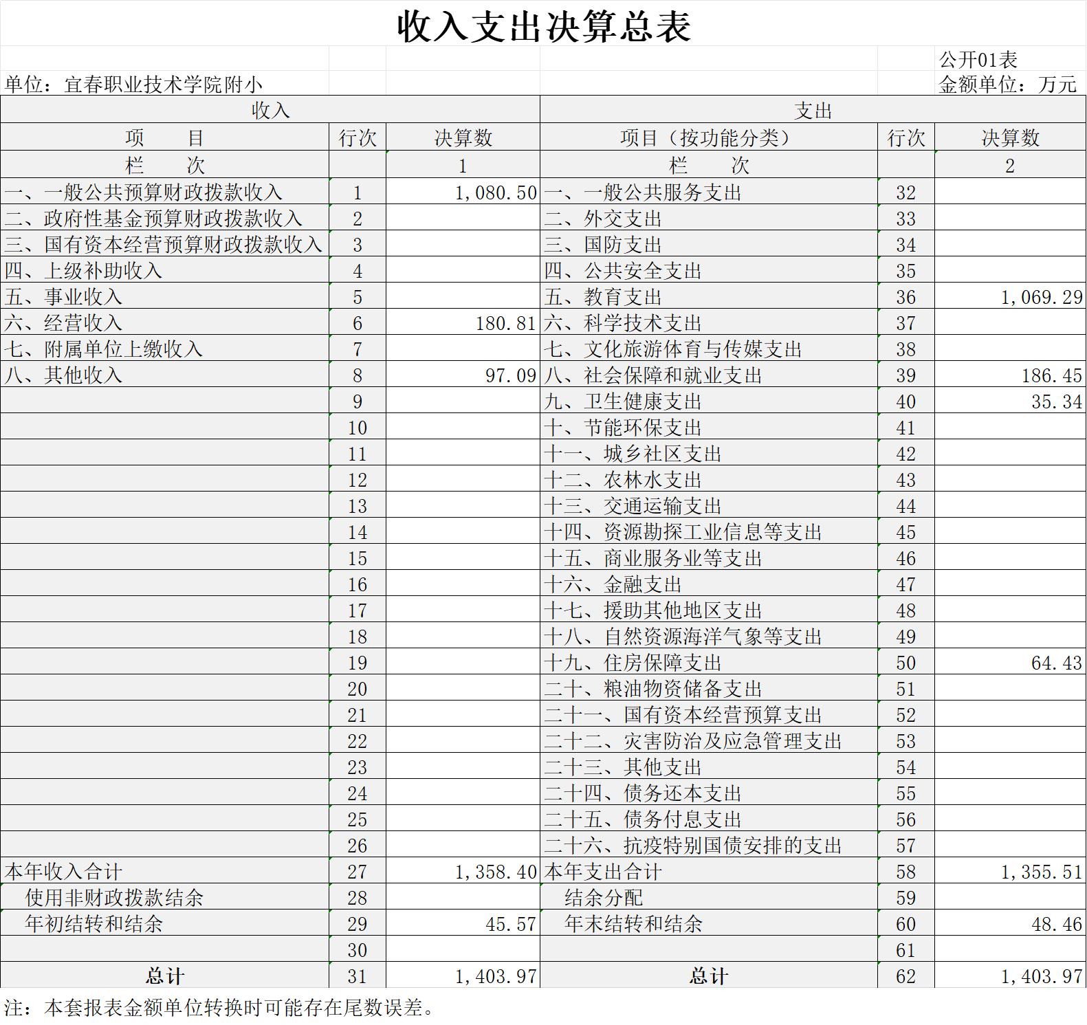 一、收入支出决算总表