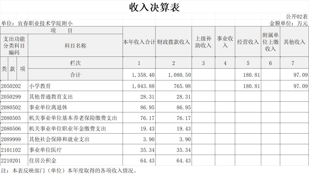 二、收入决算表