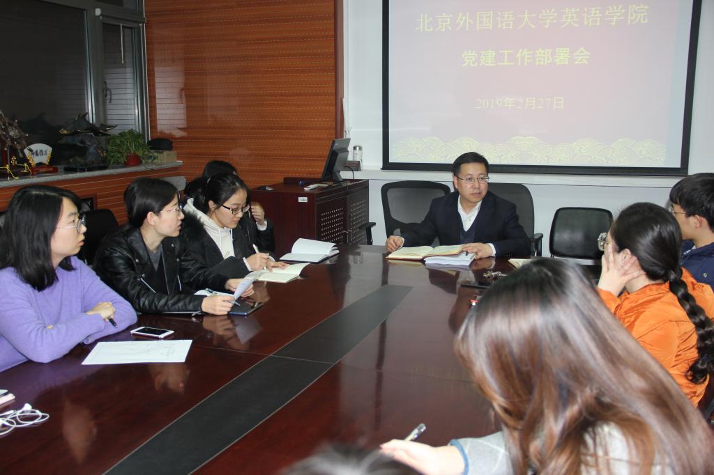 2月27日周三晚7点,在YABO鸭脖115会议室,召开2018-2019学年第二学期党建工作部署会。党总支书记路兴主持,辅导员于承杰、学生党支部书记参加。