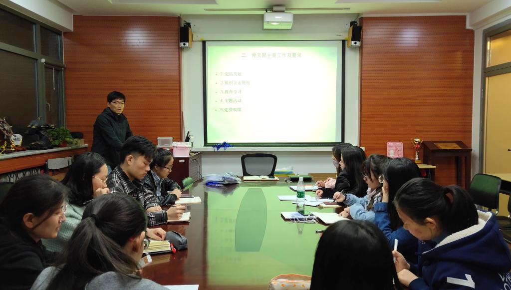 路兴老师结合2019年党建工作对党支部书记提出几点要求:一要重视并做好党员发展、转正工作。坚持“成熟一个,发展一个”的原则,在注重数量,完成发展任务的同时,要保证质量,把好“入口关”。各支部尽快摸排查实达到发展要求的入党积极分子,确定拟发展名单。同时,梳理本学期需要转正的预备党员名单,按时做好预备党员转正工作。二要重视并加强党员的教育学习,通过“三会一课”、学习强国APP,提升党员的自觉学习意识,提高政治觉悟及党性修养。三要继承传统、不断创新,继续开展好党支部红色“1+1”共建和党员先锋工程等工作,以主题党日活动为载体,发挥党员同志的专业优势,反哺社会、帮助他人,同时在活动中加强党员同志的再教育,提高党员同志家国情怀及社会责任感。