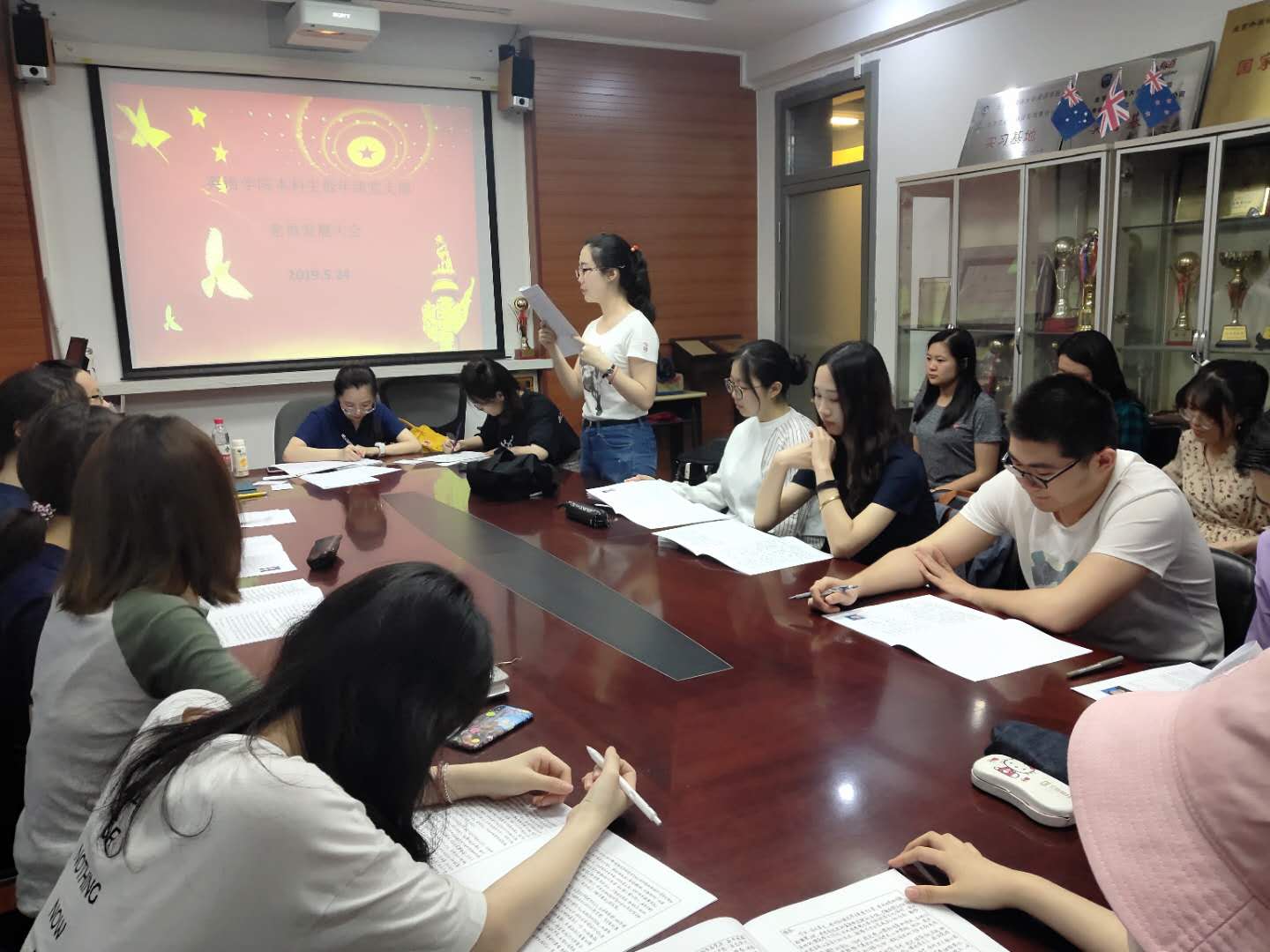 2019524日,本科生低年级党支部在学院115会议室召开会议,会议内容主要包括两部分:发展预备党员和策划红色“1+1”党支部共建活动。会议由支部书记罗振令主持。应到22人,实到22人。