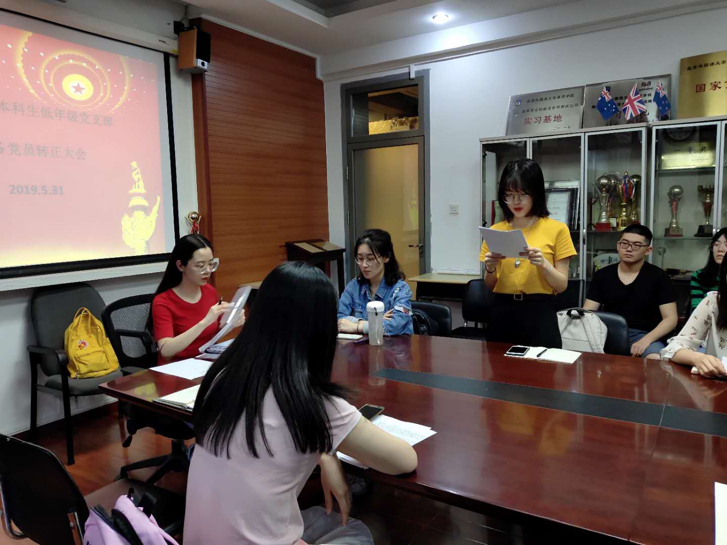 2019531日晚,本科生低年级党支部在学院115会议室召开了预备党员转正大会,会议由党支部书记罗振令主持,支部副书记、党员及预备党员参加了该次会议。会议包括三名预备党员(李雨洁、李佳琦、杨清元)的转正事宜、红色1+1”活动策划及安排、学习强国App的学习方法和学习心得分享、组织观看党章电视辅导教程并围绕党员肩负的责任展开探讨等内容。