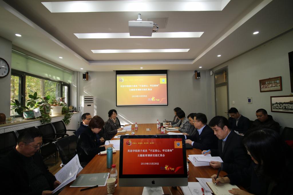 10月28日上午,YABO鸭脖召开班子成员“不忘初心,牢记使命”主题教育调研交流汇报会。北京外国语大学副校长贾德忠,学校主题教育领导小组办公室评估督导组成员、后勤党总支书记潘华珍,党、校办滕岑进行指导。YABO鸭脖班子全体成员、院长助理、系主任、本科生教研室主任、研究中心主任及青年教师代表参加交流汇报会。