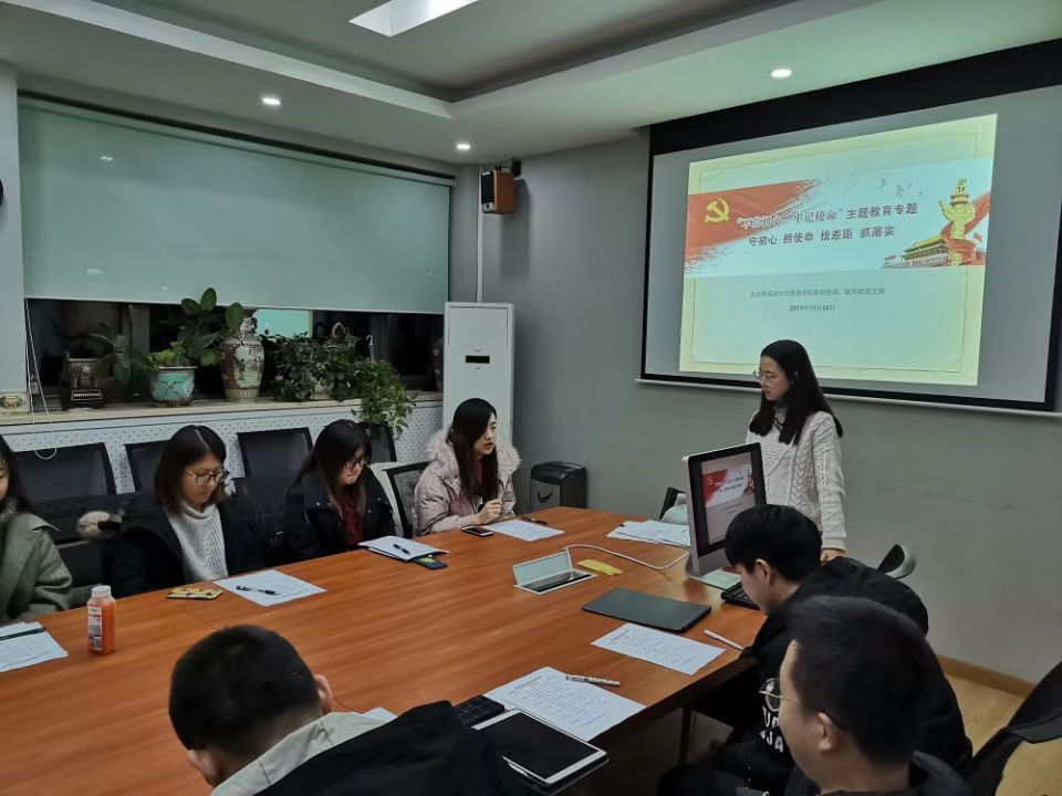 会上,罗振令首先考察了与会党员对“五位一体”总体布局、“四个意识”、“四个自信”、“四个全面”和“两个维护”等内容的掌握情况,并列出部分十九大报告部分内容的中英对照版本,让与会党员感受如何恰当的用英语表达相关内容。同时,还罗列了参与十九大报告外文翻译的专家对十九大报告内容的评价。罗振令认为,“俗话说‘相由心生’,一个人的外貌在一定程度上可以看出这个人的内在,而我们自己所写的文章,其中的文风和内容也是可以反映出我们的个人形象,所以我们要仔细斟酌自己所写的文章,让其可以更好的体现自己形象。”大家结合在主题教育期间的学习谈了体会,其中,赵心宇同学认为,阅读主题教育相关材料时要将书中理论与实践相结合,并且学习和践行其中体现的爱国主义思想,同时,结合“学习强国”学习有些理论会更易理解。
