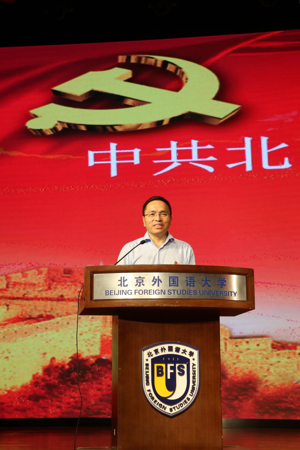 杨丹校长在讲话中向全体与会党员强调了今年下半年成功召开第十次党代会和制订好“十四五”规划等重点工作的重要性。他在讲话中指出,北外在人才培养中要继续提升学生听、说、读、写、译等五项基本语言技能,积极深化在语言学、文学、翻译学、比较文明与跨文化交际、区域与国别研究等五个领域的人才培养和学术研究;要沿着“北京的北外、中国的北外、世界的北外、云端的北外、智能的北外”这五个发展方向继续前行;要深化“人才强校、学术兴校、全球立校、特色发展、深度开放”等五个发展战略。“十四五”期间,北外将以不同方式和层次开设所有建交国语种,要拓展中外交流的学术桥梁,打造多语种教材方阵、多语种辞书方阵、多语种期刊方阵,并在此基础上不断拓展发展领域、优化学科生态、涵养学术文化、提升师资队伍、实现资源突破,改善民生保障。