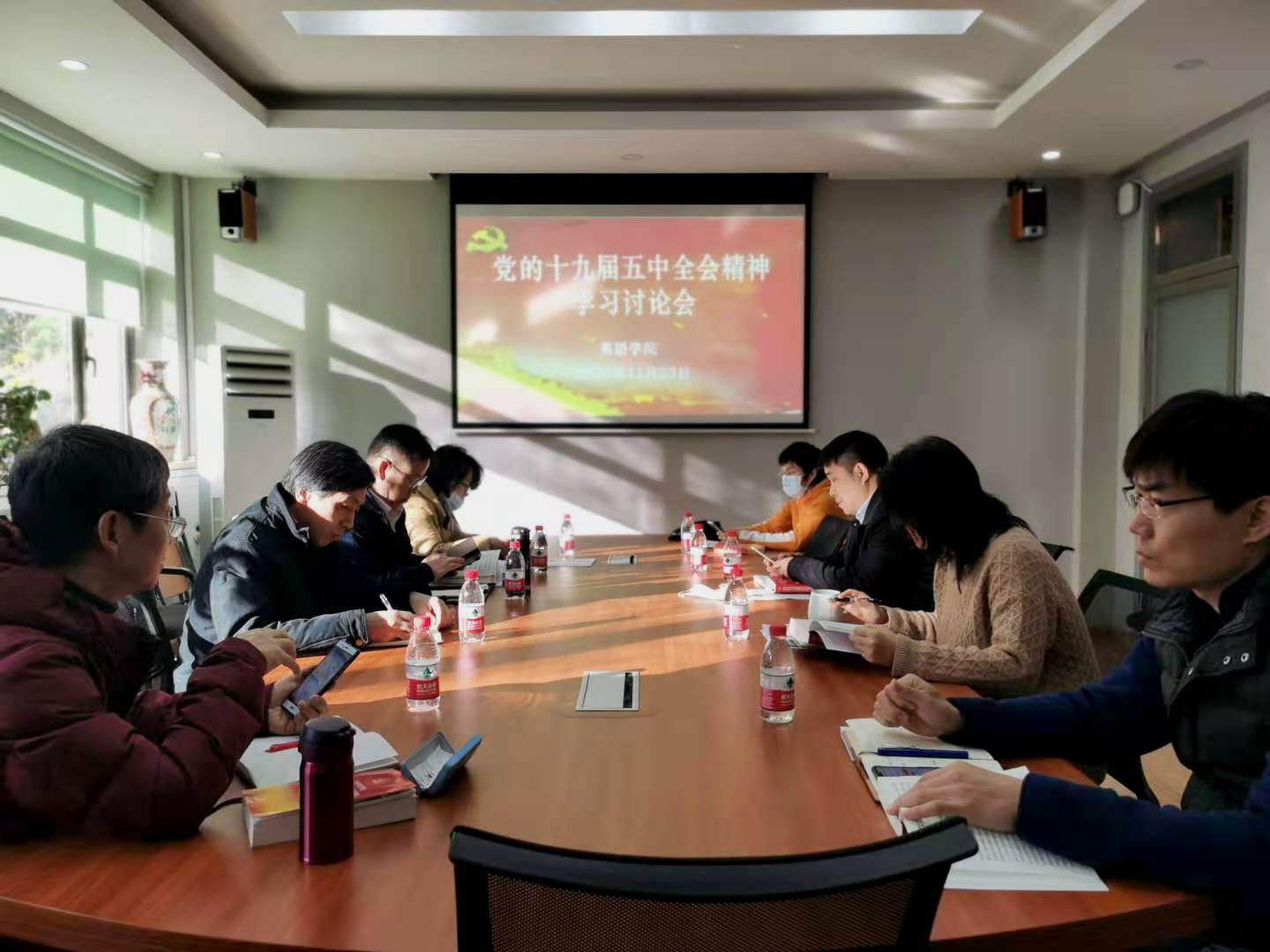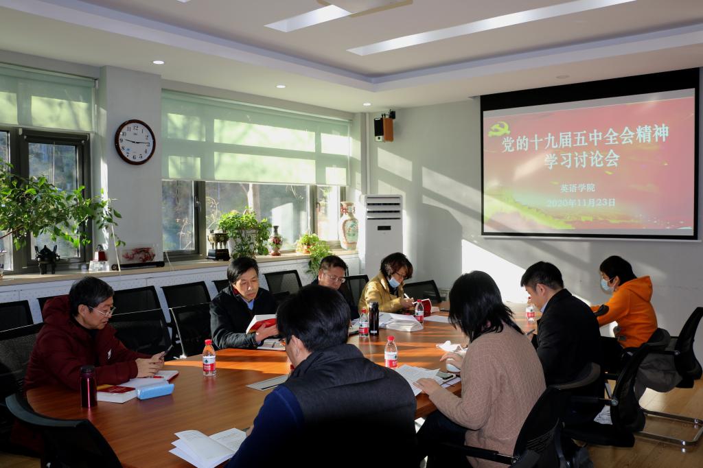 11月23日上午,YABO鸭脖理论学习中心组召开党的十九届五中全会精神学习讨论会。学院党总支委员及行政班子成员参加。学习讨论会由学院党总支书记路兴同志主持。
