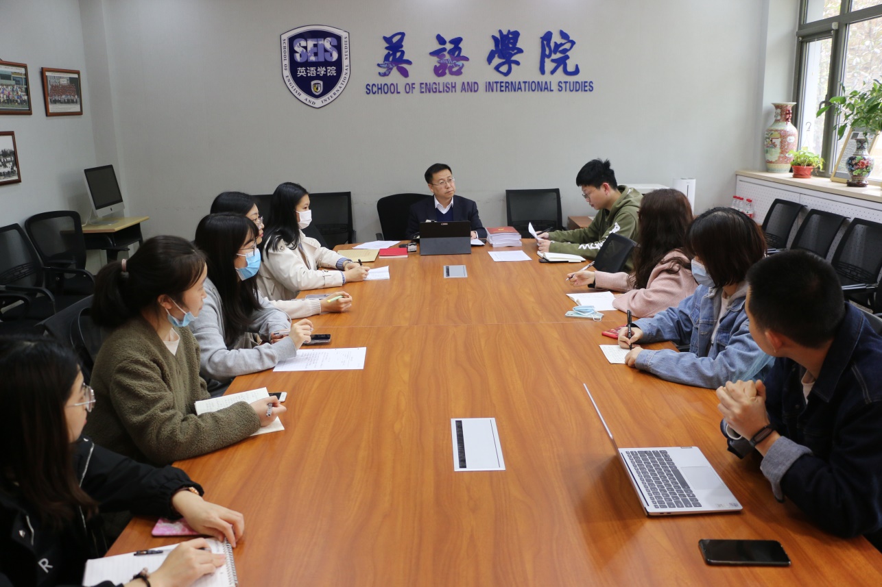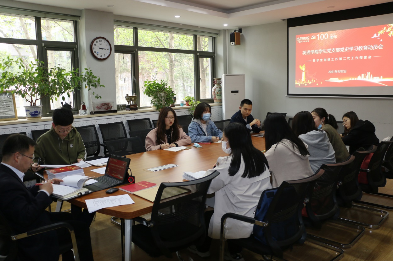 会上,路兴传达了学校召开党史学习教育动员推进会暨学习交流会的精神,并结合《北京外国语大学党史学习教育工作方案》,从总体要求、整体进度、学习内容、学习方式、相关要求等方面,动员和部署学院各教师党支部开展党史学习教育工作,并对学生党支部开展党史学习教育提出要求:一是各党支部要把党史学习教育作为党支部贯穿全年的重要工作内容,把学史明理、学史增信、学史崇德、学史力行贯穿始终;二是在组织党员学习过程中,要认真学习领会党在各个历史发展阶段及所取得的成绩,正确对待、辩证把握改革开放前后的两个历史时期,不能用改革开放后的历史时期否定改革开放前的历史时期,也不能用改革开放前的历史时期否定改革开放后的历史时期;三是在党史学习过程中结合各支部和党员实际,坚持开展红色“1+1”结对共建和党员先锋工程等活动,尽可能地帮助身边需要帮助的人。