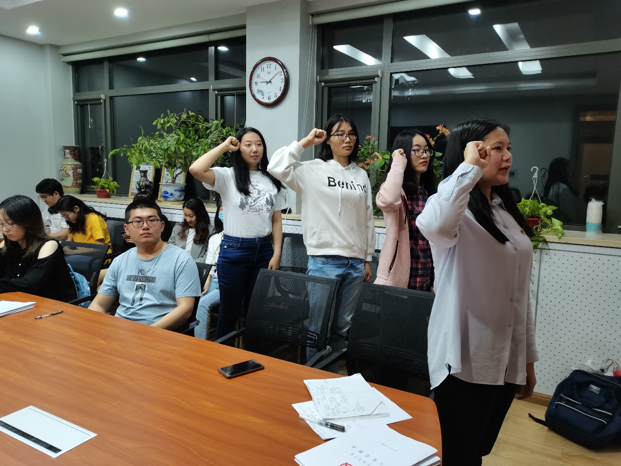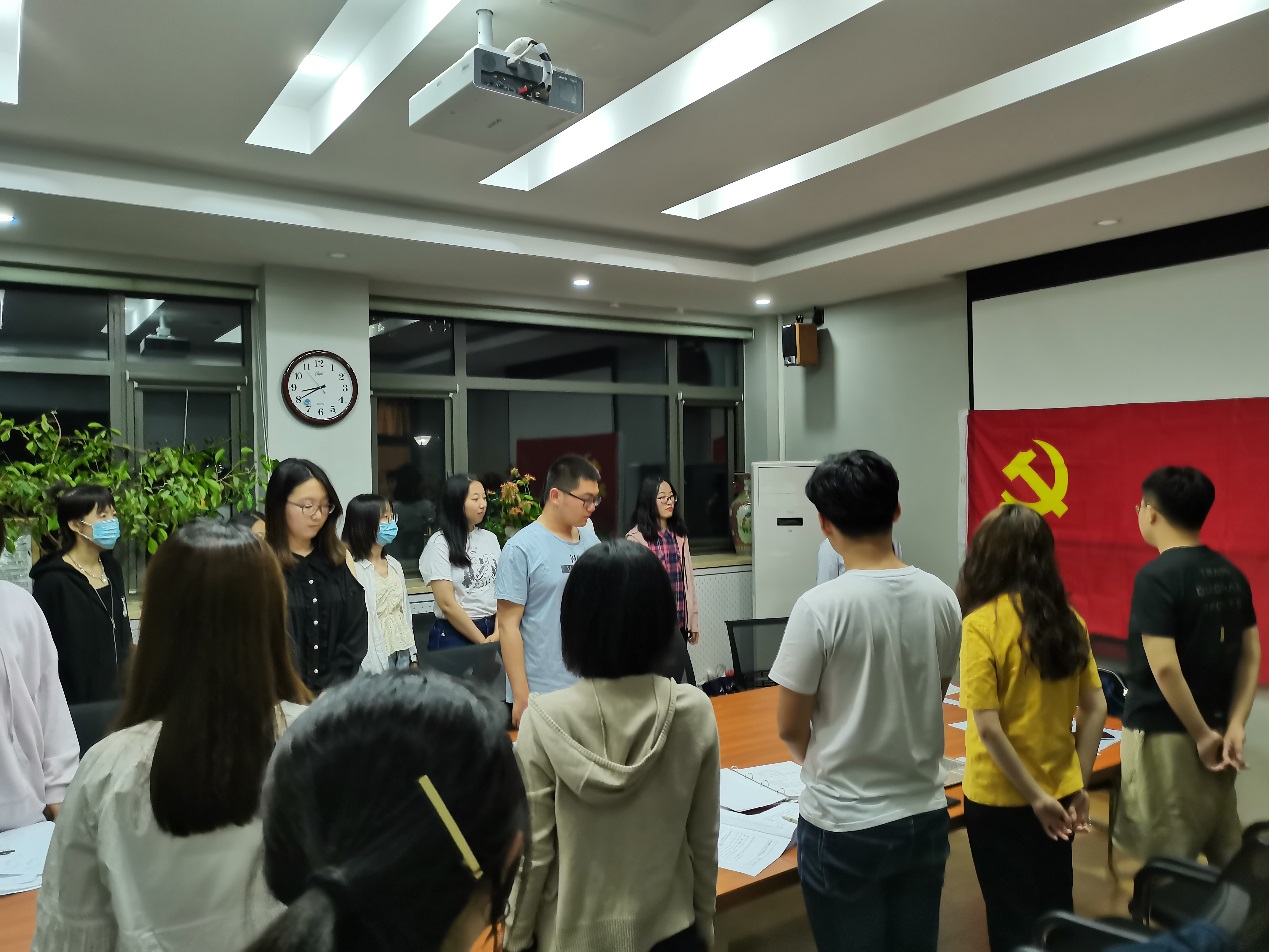 组织委员谭天歌同志宣布会议出席人数,本次支部大会到会人数符合支部大会要求,大会决议有效。全体参会人员起立,奏国际歌。